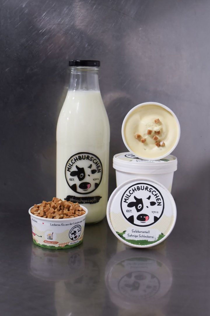Aus der frisch gezapften Milch unserer tollen Kühe und natürlichen Zutaten zaubern wir in unserer eigenen Eismanufaktur das leckere Milchburschen-Eis. Die Zubereitung ist echtes Handwerk, da wir nur so die einzigartige Qualität und unglaubliche Geschmacks­intensität garantieren können. Nur durch die frische Zubereitung und die schonende Verarbeitung wird unser Milchburschen-Eis zum echten Eisgenuss.